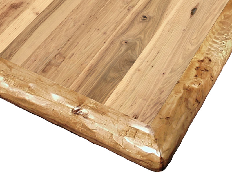 Rustic, Plank Matched Hickory Veneer Restaurant Table with Hand Hewn Pine Frame